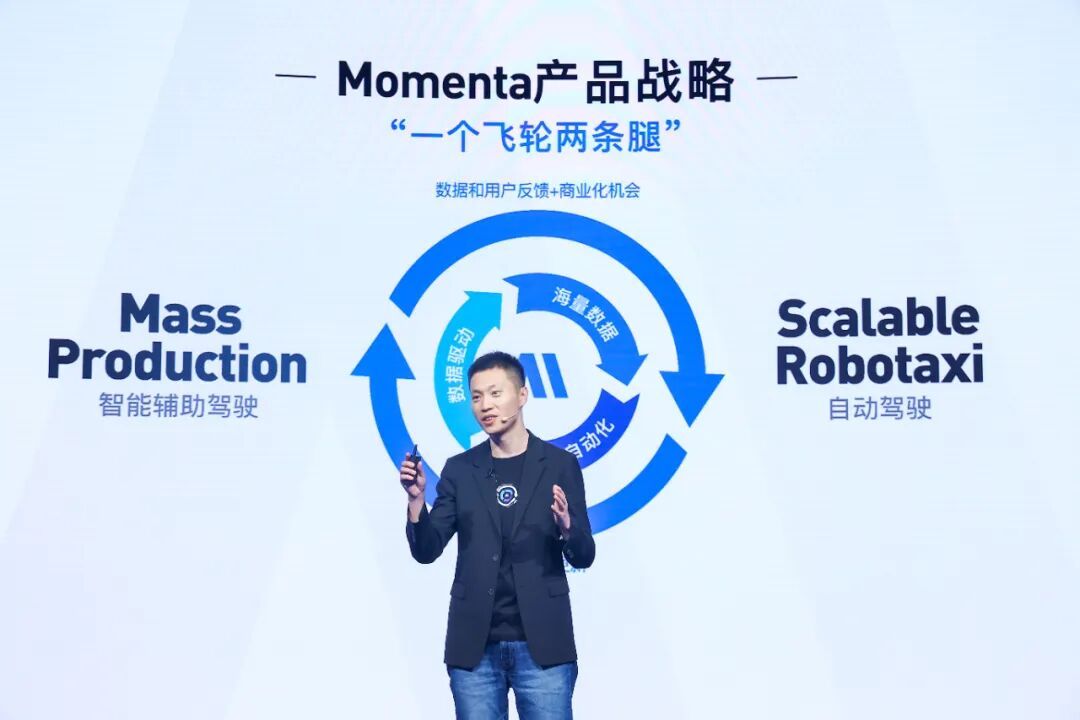 据介绍,在推进高级别自动驾驶的过程中,Momenta采取了“一个飞轮,两条腿”的产品战略。“‘飞轮’是战略飞轮,‘两条腿’其中一条是量产自动驾驶(Mass Production),另一条腿冲刺完全无人驾驶(Scalable Robo)。”曹旭东表示,“今年很大程度上我们将技术重点从量产的飞轮升级到了L4飞轮,年底的目标是实现Robotaxi‘车端无人’。”